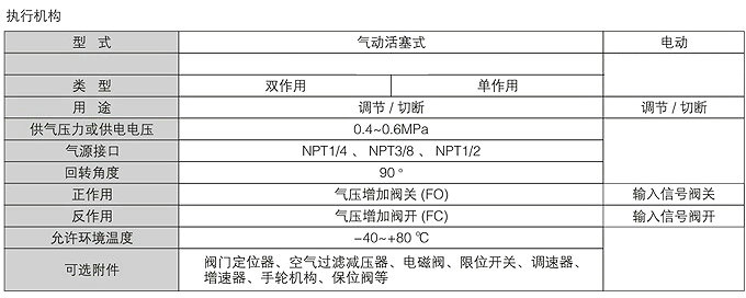 執(zhí)行機構:氣動活塞式執(zhí)行機構、電動執(zhí)行機構