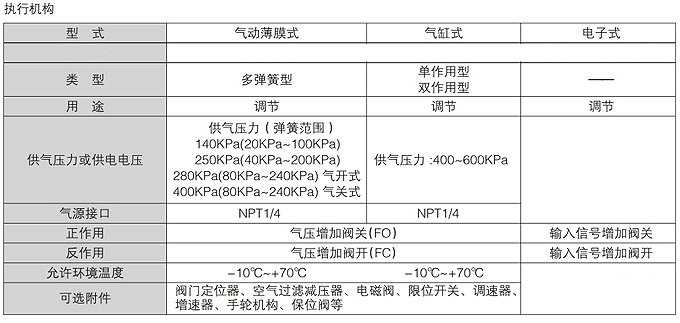 執(zhí)行機構(gòu):氣動薄膜式執(zhí)行機構(gòu)、氣動活塞式執(zhí)行機構(gòu)、電動執(zhí)行機構(gòu)