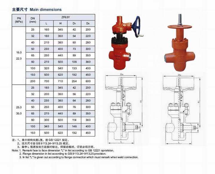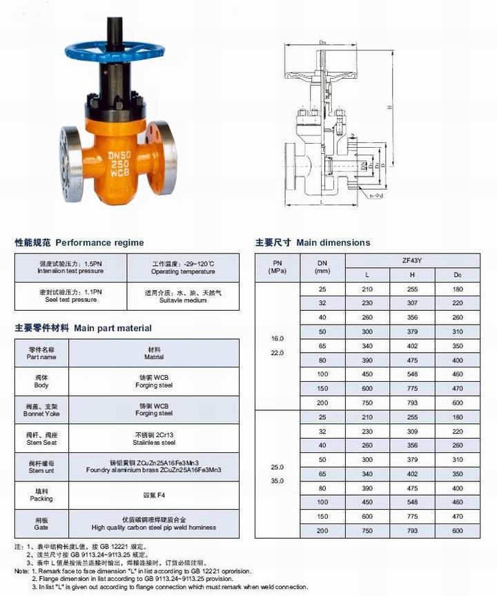 產(chǎn)品型號:ZF43Y、ZF63Y、Z83Y、ZF543Y、ZF563Y、Z583Y、KZ53Y公稱通徑:DN25-DN300公稱壓力:16Mpa-42Mpa適用溫度:-30℃-125℃適用介質(zhì):水、油品、天然氣等閥體材質(zhì):鑄鋼、碳鋼、不銹鋼連接方式:法蘭連接傳動方式:手動,蝸輪設(shè)計標準:GB/T19672;API 6D結(jié)構(gòu)長度:GB/T 19672;API 6D連接法蘭:GB/T 9113;ASME B16.5試驗檢驗:JB/T 9092;AIP 598