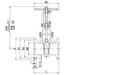 抗硫閘閥主要外形及結(jié)構(gòu)尺寸圖: