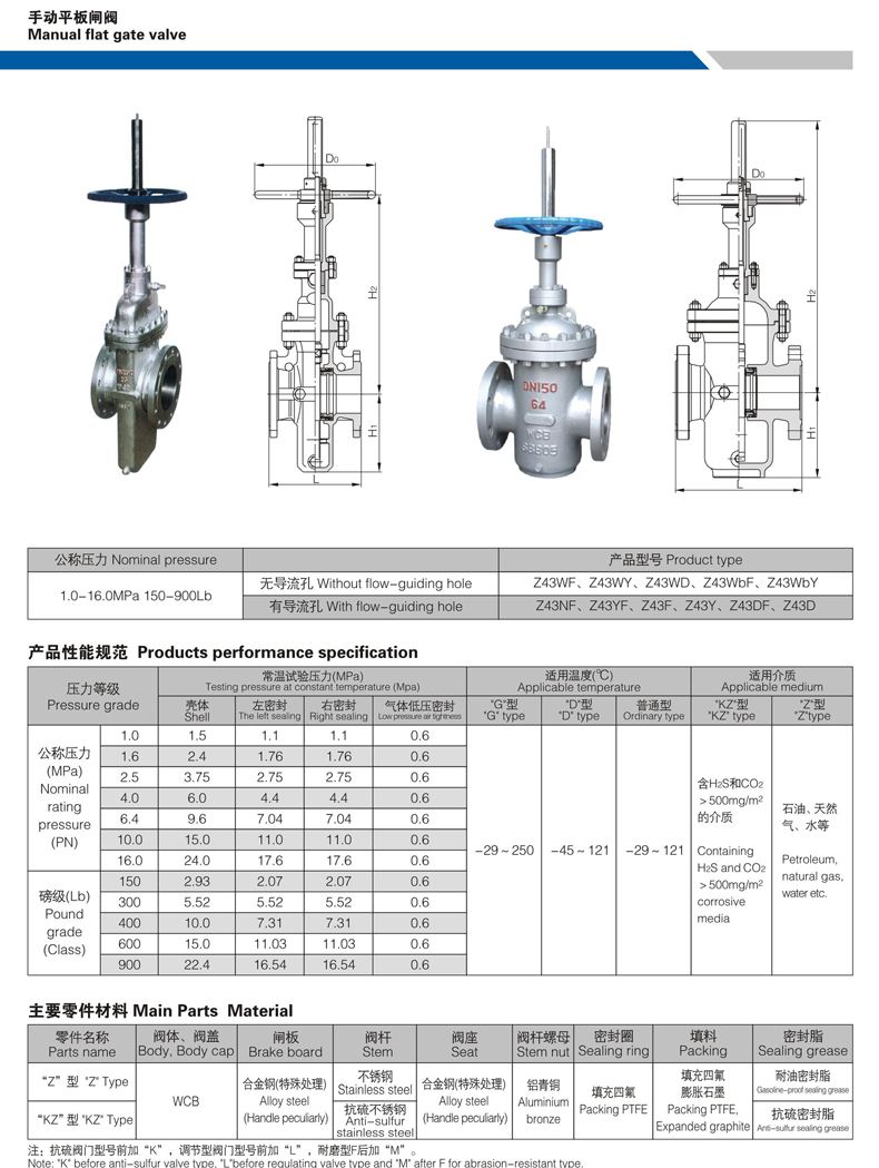 KZ41H型PN16、PN25抗硫閘閥主要性能參數(shù)