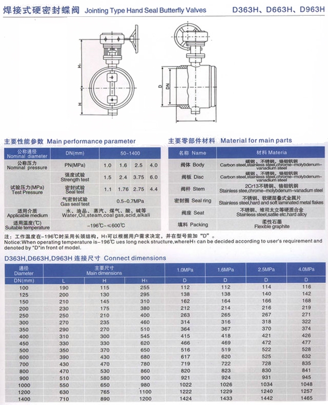 焊接式蝶閥,焊接式金屬硬密封蝶閥主要技術(shù)參數(shù)