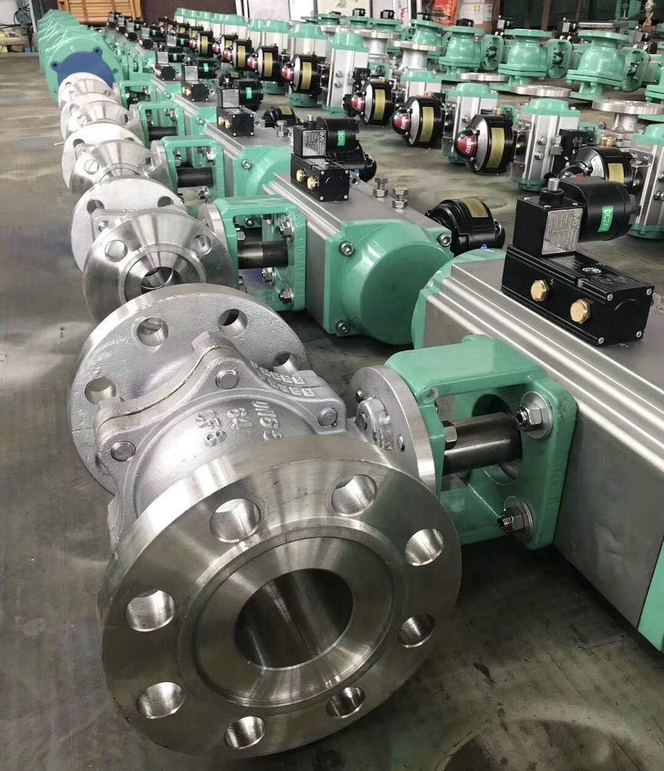 ZSJQ氣動(dòng)調(diào)節(jié)球閥是采用角行程氣動(dòng)執(zhí)行器及球閥組成。氣動(dòng)調(diào)節(jié)球閥是一種轉(zhuǎn)角為90°的旋轉(zhuǎn)類球閥,也可稱為"氣動(dòng)O型調(diào)節(jié)球閥"。氣動(dòng)調(diào)節(jié)球閥采用智能控制與定位,與電氣閥門定位器配套,輸入4~20mADC信號(hào)及0.4~0.7MPa氣源即可控制運(yùn)轉(zhuǎn),實(shí)現(xiàn)對(duì)壓力、流量、溫度、液位等參數(shù)的調(diào)節(jié)。氣動(dòng)調(diào)節(jié)球閥是以壓縮空氣為動(dòng)力,閥桿帶動(dòng)閥芯在閥體內(nèi)轉(zhuǎn)動(dòng)90°可以實(shí)現(xiàn)全開/全閉的動(dòng)作。氣動(dòng)調(diào)節(jié)球閥按其密封性能分為金屬密封與軟密封。氣動(dòng)調(diào)節(jié)球閥具有結(jié)構(gòu)緊湊、體積精小、運(yùn)行可靠、密封性好、維修容易、安裝方便、適應(yīng)性等特點(diǎn)。氣動(dòng)調(diào)節(jié)球閥特別適合于介質(zhì)是粘稠、含顆粒、纖維性質(zhì)的場(chǎng)合。氣動(dòng)調(diào)節(jié)球閥廣泛應(yīng)用于石油、化工、教學(xué)設(shè)備、輕工、高壓設(shè)備、制藥、造紙等工業(yè)自動(dòng)控制系統(tǒng)中,作遠(yuǎn)距離集中控制或就地控制。