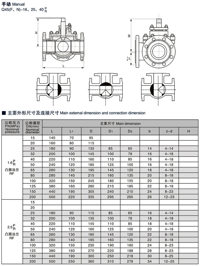三通四密封球閥有T型和L型。T型能使三條正交的管道相互聯(lián)通和切斷第三條通道,起分流、合流作用。L型只能連接相互正交的兩條管道,不能同時保持第三條管道的相互連通,只起分配作用。產(chǎn)品特點:(1)、三通球閥在結(jié)構(gòu)上采用一體化結(jié)構(gòu),4面閥座的密封型式,法蘭聯(lián)接少,可靠性高,設(shè)計實現(xiàn)了輕量化。(2)、三通球芯分T型和L型,使用壽命長,流通能力好,阻力小。(3)、球閥按作用式分單作用和雙作用兩種型式,單作用式的特點是一旦動力源發(fā)生故障時,球閥將處于控制系統(tǒng)要求的狀態(tài)。
