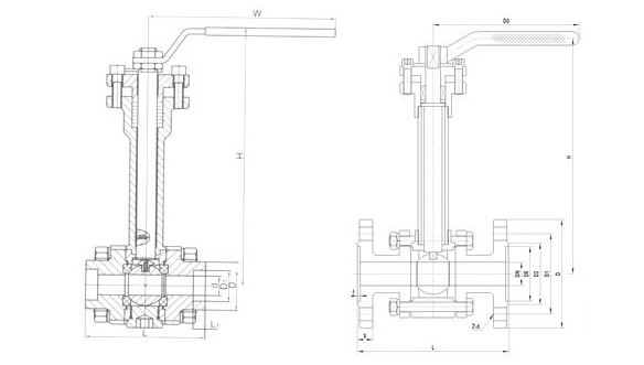 低溫球閥,超低溫球閥尺寸圖: