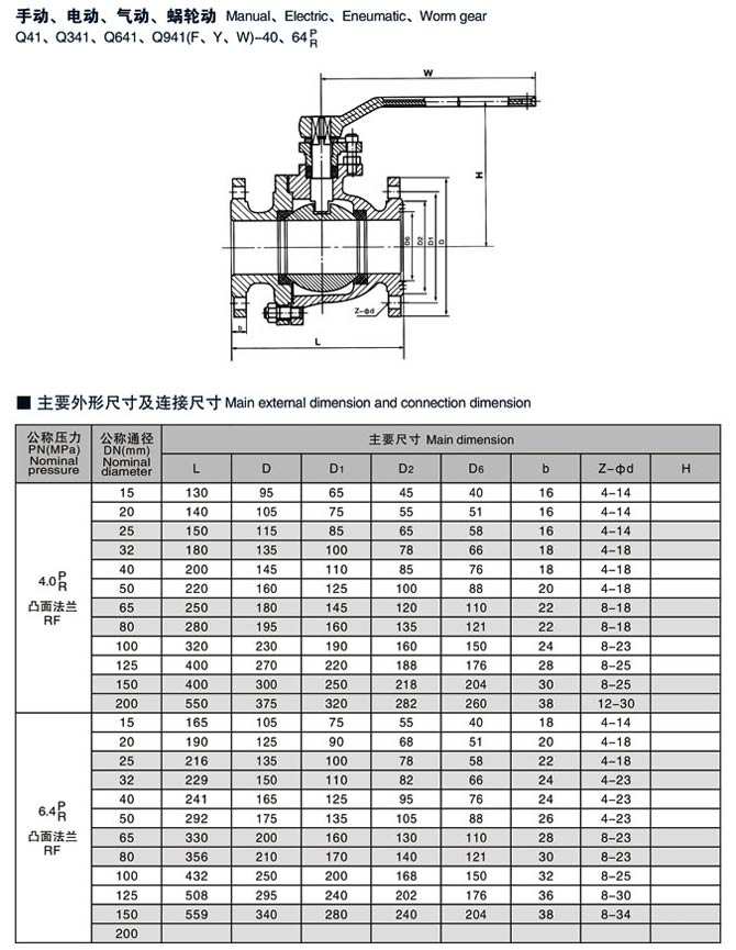法蘭球閥,Q41F法蘭式球閥尺寸結構圖: