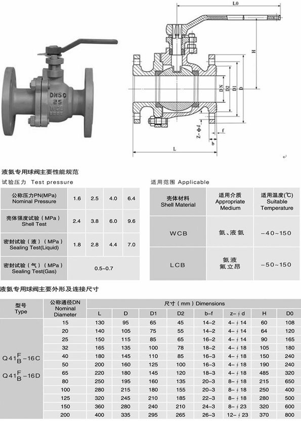 氨氣球閥,液氨球閥參數(shù)圖紙: