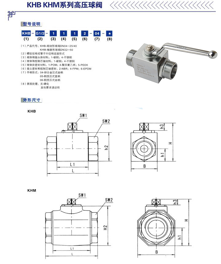 ① 系列代號:KHB液壓球閥,液壓高壓球閥(BKH液壓高壓球閥)系列、KHM液壓球閥(MKH)系列高壓球閥