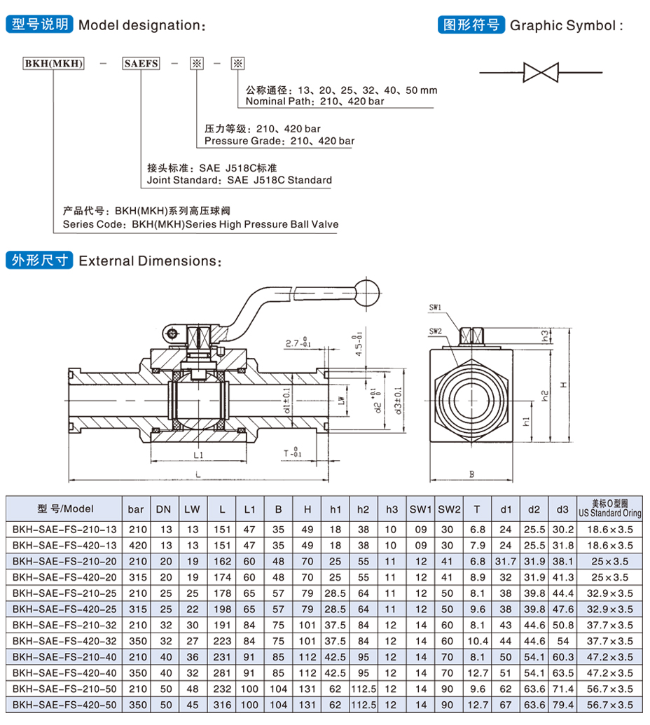 ③壓力等級(jí):210、420 bar