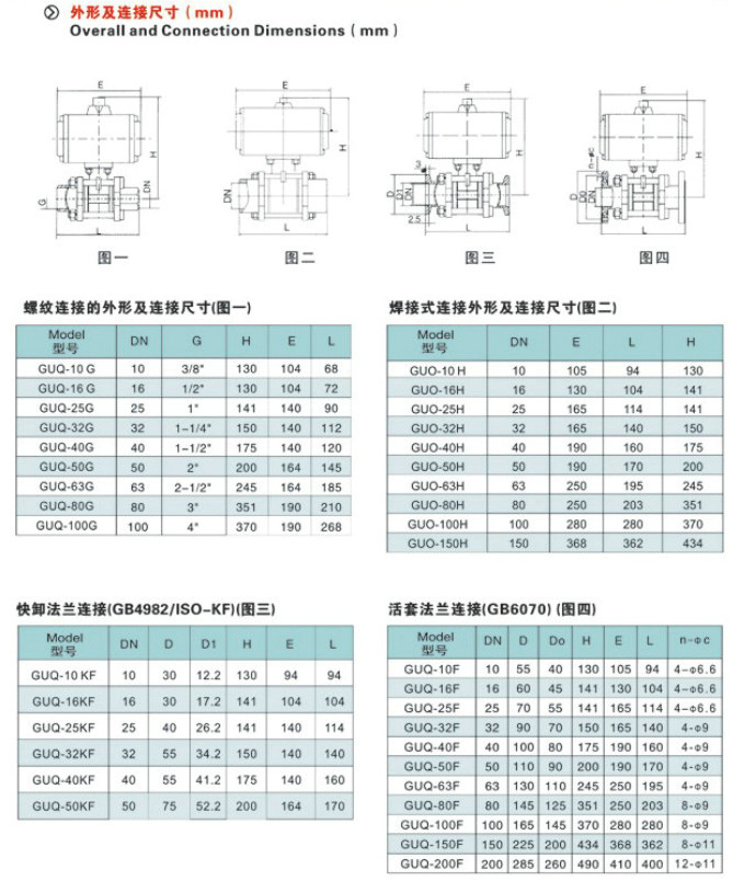 氣動高真空球閥,GUQ氣動真空球閥參數(shù)尺寸圖: