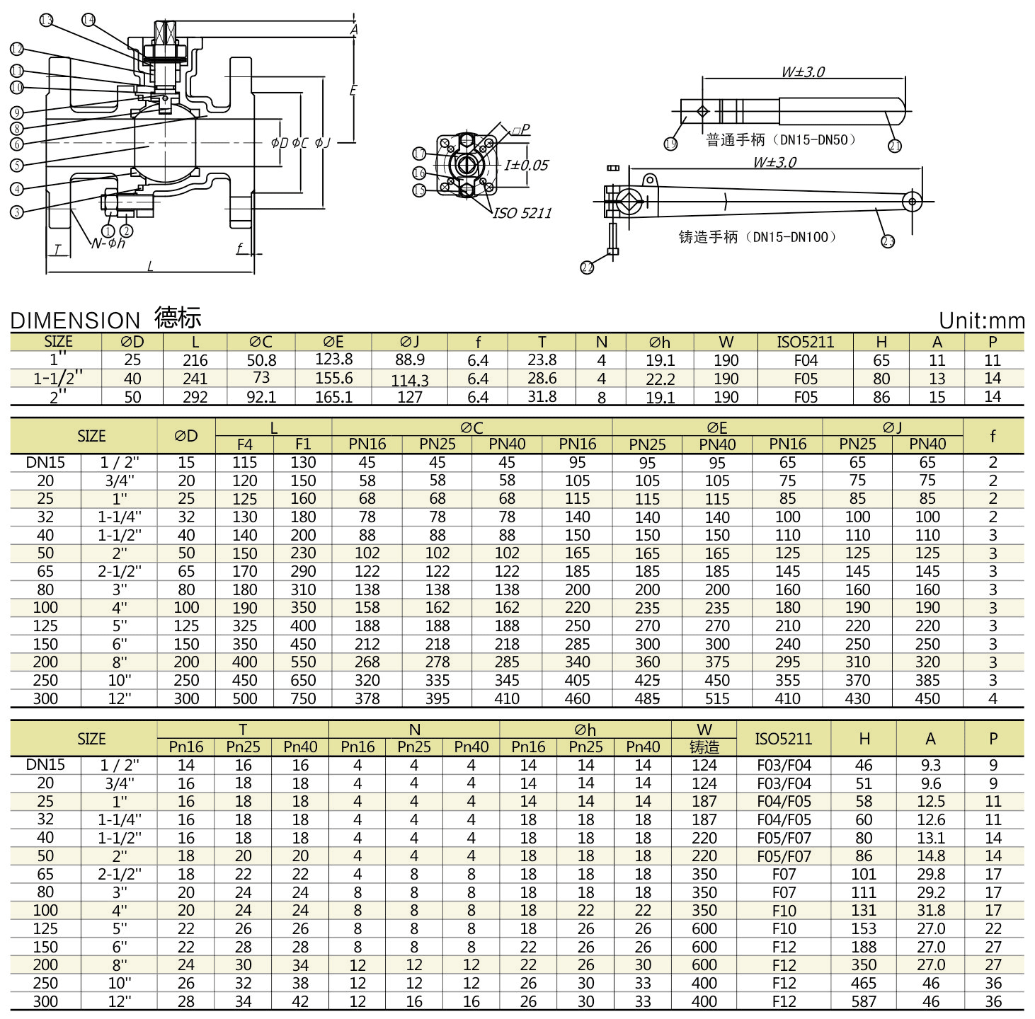 德標球閥,德標法蘭球閥參數(shù)尺寸圖: