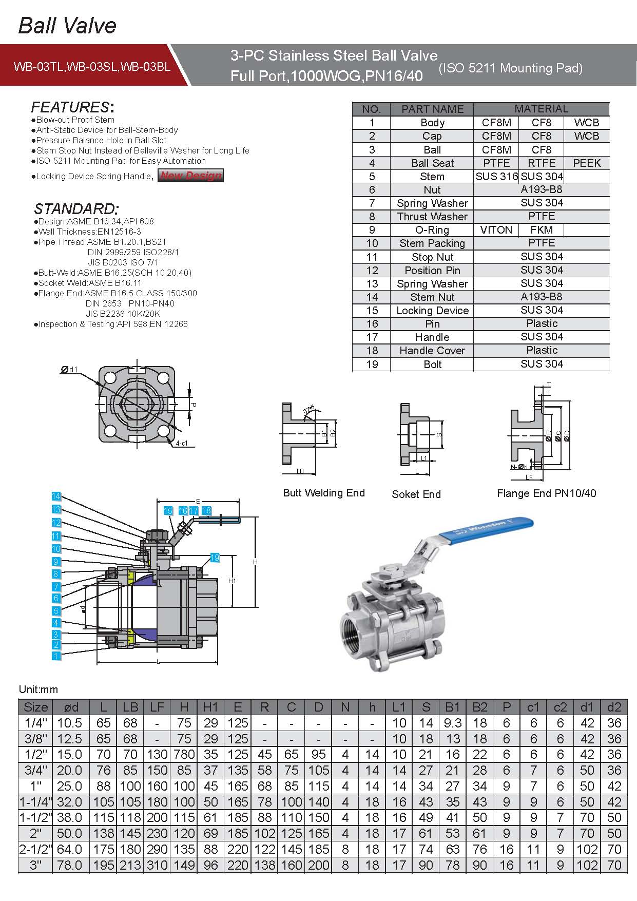 三片式球閥產(chǎn)品特征