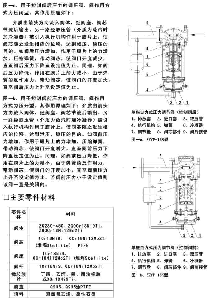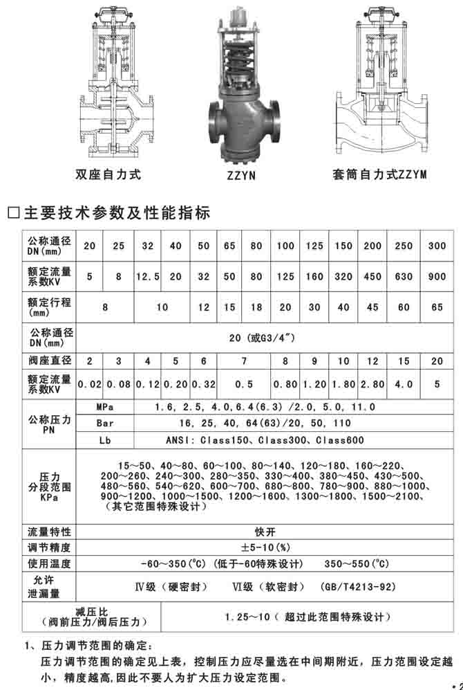 本系列產(chǎn)品有單座(ZZYP),套筒(ZZYM),雙座(ZZYN)三種結(jié)構(gòu);執(zhí)行機(jī)構(gòu)有薄膜式、活塞式二種;作用形式有減壓用閥后壓力調(diào)節(jié)(B型)和泄壓用閥前壓力調(diào)節(jié)(K型)。